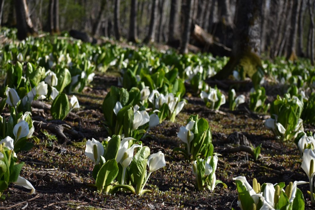 Abashiri is said to have the largest habitat of skunk cabbage in the Yobito area. It’s right behind Lake Abashiri along the JR track. You can see it from the train, but I really recommend you get off at Yobito station and take a short walk to the flower patch❤