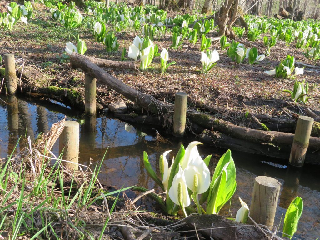 This year the skunk cabbage came to full bloom about a week earlier than usual. It’s in full bloom right now!! Probably it’s the warm winter that caused this surprise.